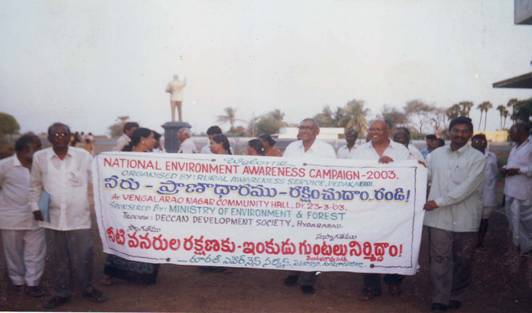 In the year 1995 and 1995-1996 Rural Awareness Service implemented Two Environmental Awareness camps under the theme of Water and Elixir supported by the Ministry of Environment and Forest Govt.of India through the Regional Resource Agency of The Deccan Development-Hyderabad.for these two programmes 125 persons participated from all walks of life. Several NGO representatives and resource persons attended the programme.