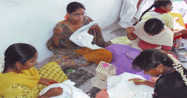Trainee students in embroidery work implemented by RAS Center at Pedakakani village under NCLP-RAS